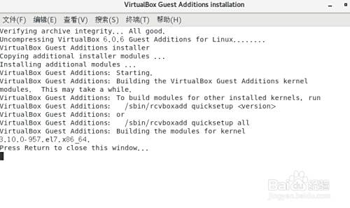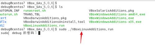 也可以在终端中执行脚本来进行安装,如下图所示VBoxLinuxAddtions.run即为执行文件。