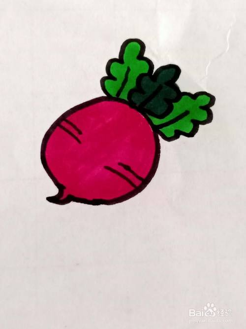 然后,将圆萝卜全部涂上漂亮的桃红色。