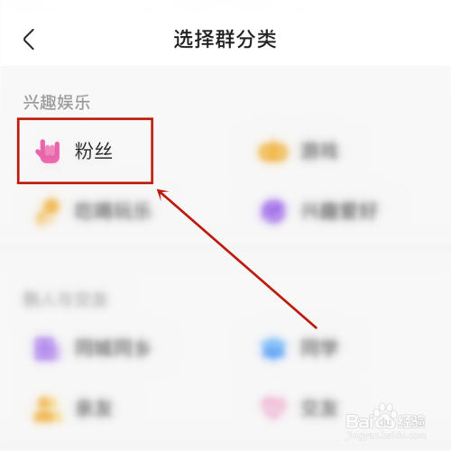 选择群分类为兴趣娱乐【粉丝】;
