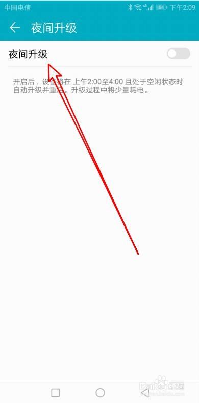 在打开的页面找到夜间升级的设置项。