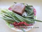 食材:韭菜 血块 姜辣皮子 胡椒粉 鸡精 植物油 盐 味级鲜