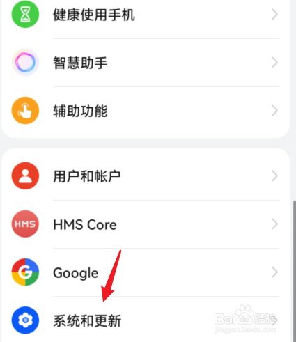 选择手机的系统和更新选项。
