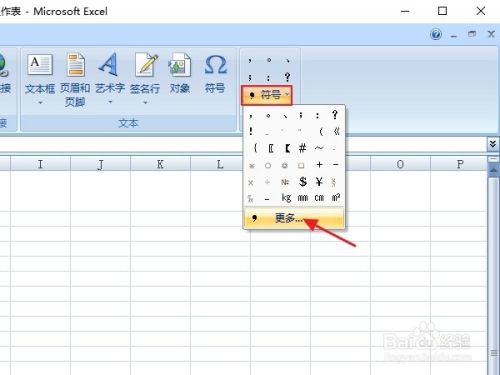 3:点击“符号”,在弹出的小窗口里选择“更多”。