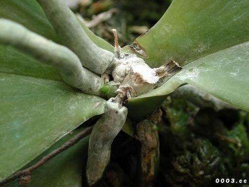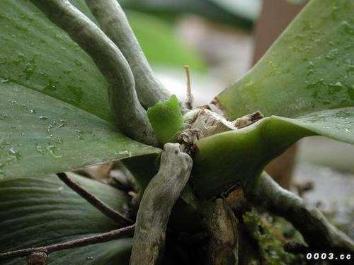 蝴蝶兰是单茎类植物,自直立之茎向上生生不息,在它的叶腋茎部却有潜芽 1-3 个,正常状态下多不能生芽成株。