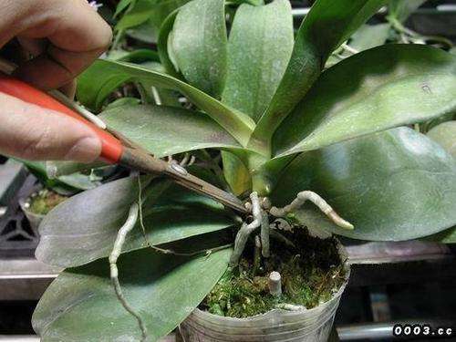 待植株生长较长后,可以自丛叶下丛生根之间用消毒过后的刀或剪切断,上部有根叶者栽入新盆或是板植,使其继续生长,下面留有根茎部份,予以适当水份。