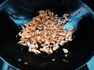 炒锅倒入食用油烧热,下河虾煸炒至酥脆然后关火放凉备用。