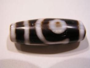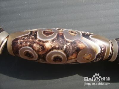 看天珠的质地。从矿藏视点来调查,各类矿藏质地的色彩可分为三种,本来固有的色彩称为白色;混入色素离子导致的色彩称为他色;发生裂纹导致的色彩,称为假 色,这是矿藏学质地的三种色。天珠质地的色彩大致分为乳白色、黑色、棕色、赤色及淡绿色五种,其间以乳白色的质地最好,所以天珠线孔内是不是为乳白色是区分 天珠的必备条件之一。