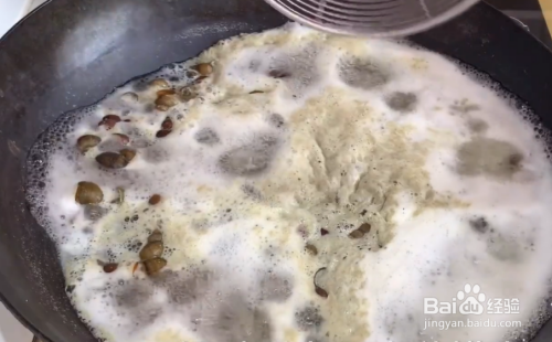 锅中烧水,将田螺焯水后再次洗净,再将香料下锅炒香,加入都把酱炒出红油