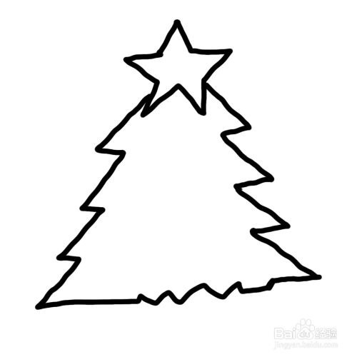 第二步,画出五角星下面的圣诞树的形状,曲折的三角形