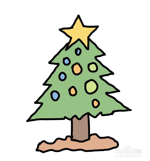 第六步,给圣诞树的树干涂上颜色,还有星星也涂上黄色。彩色简笔画圣诞树就画好了。