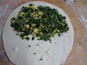 为防止韭菜出水,拌馅时要先放油,再放其他调料,而且最好做盒子之前再拌馅