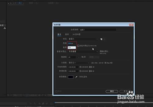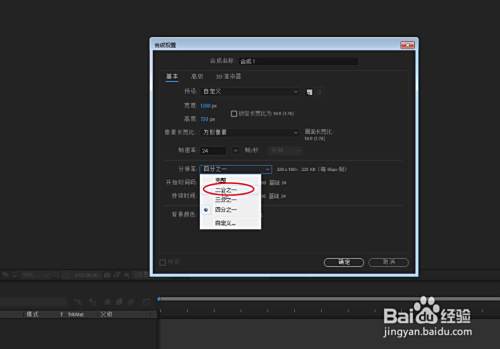 我们可以将合成的宽度与高度设为:1280×720,这样就可以将默认合成大小更改为720P(高清)。