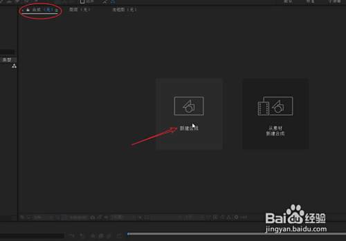 在AE的合成面板找到“新建合成”选项按钮,鼠标单击此按钮,快速建立一个新合成。