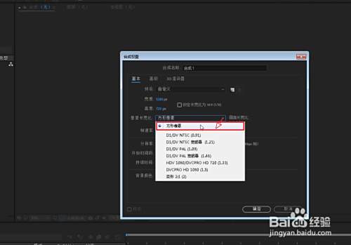 将“像素长宽比”更改为:方形像素,这样就可以恢复默认的像素长宽比属性。