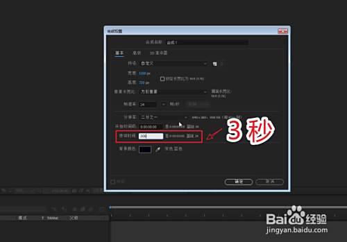 在“持续时间”选项,输入数字:300,即可将默认的合成持续时间更改为三秒。