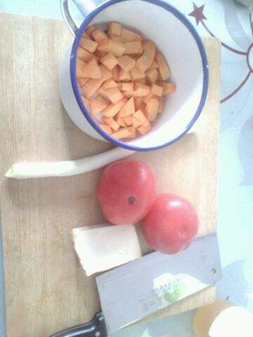 西红柿有丰富的维生素,南瓜能解毒,保护胃粘膜,帮助消化的功效。