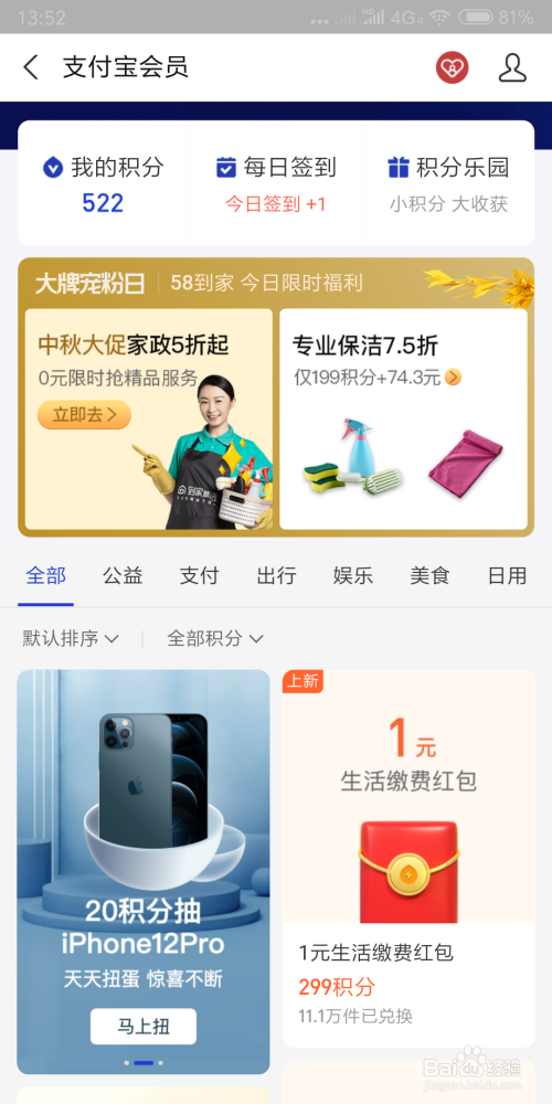 生活中随处可见支付宝,但是你知道他的积分可以兑换出行红包吗?