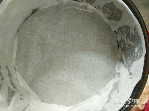 用黄油抹蛋糕模四周,加入油纸