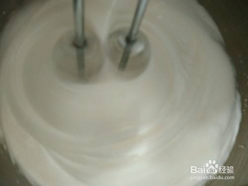 (因为忘记拍了蛋白打好的样子,所以现在字面说说吧!)蛋白分三次加入细砂糖。开始搅拌前加入几滴柠檬汁和部分细砂糖,搅拌……把蛋白搅拌起泡泡后加入第二次细砂糖,蛋白可以看到痕迹时加入最后一次细砂糖。到提起打蛋器有三角就完成了!(我一直是用快速打的,如果不能掌握的也可以低速慢慢打)