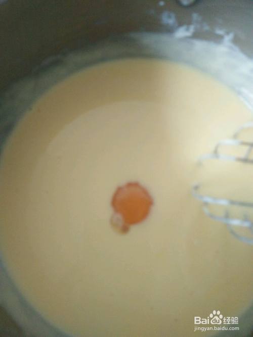 蛋黄蛋白分开(蛋黄加入奶酪底,蛋白分开备用),加入一个蛋黄搅拌融合后再加入另一个……(分五次加入)