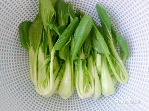 油菜择去老叶,在流水下冲洗干净后沥干水份,竖着切成两半。(如果油菜比较小的话可以不用切)
