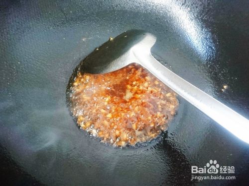 6:热锅倒油,煸香蒜末,倒入碗汁煮开。