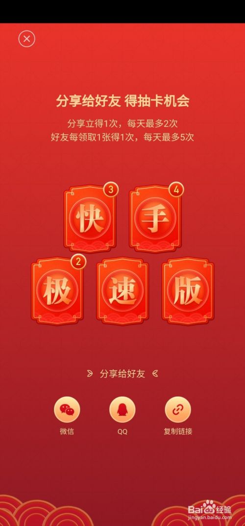 而获得万能卡的方式也很简单,邀请3个快手极速版新用户即可