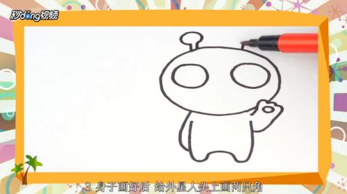 3身子画好后,给外星人头上画两只角,画上眼珠子和鼻子。