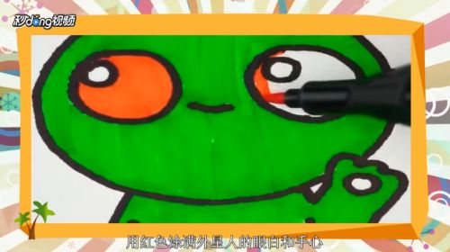 6涂完皮肤后,用红色涂满外星人的眼白和手心。