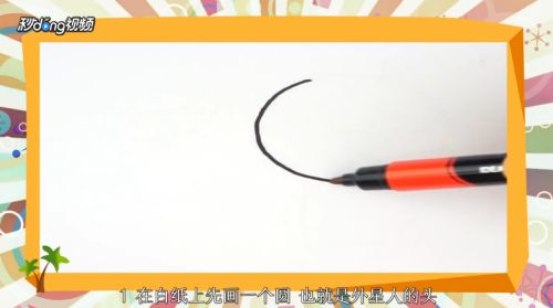 1在白纸上画一个圆,也就是外星人的头,不要把圆画满,在右下角留一点缺口。