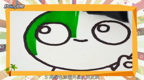 5用绿色涂抹外星人的皮肤,涂满头部、下半身和两只角,慢慢均匀涂开。