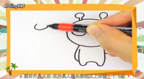 4画好外星人后,在外星人头部的左上角画一个飞船,将没有画好的地方补全。