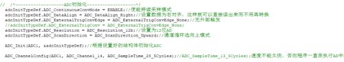 3、如果需要自动循环地进行AD采样,不要开启AD的外部触发,即adcInitTypeDef.ADC_ExternalTrigConvEdge = ADC_ExternalTrigConvEdge_None;//无外部触发