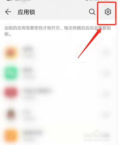 进入到应用锁页面后点击右上角的设置。