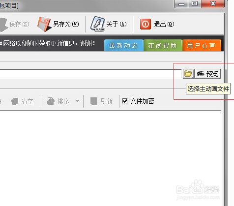下载下来 Flash Packer 后,打开它并点击“选择主动画文件”按钮
