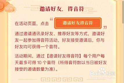 邀请好友得音符就是邀请你的好友一起参与集音符活动,好友接受了,你就能得到一个音符,不过一天最多得到10个音符。