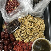 关火,把准备的食材倒入烧开的糖水中拌匀