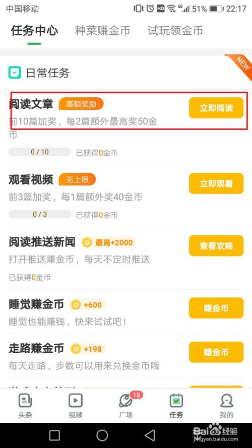 我们可以通过阅读文章领取金币,点击“立即阅读”。