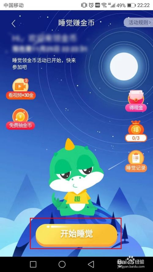 点击开始睡觉,我们睡醒后可以领取相应的金币。