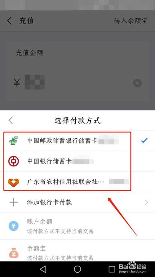 点击“下一步”后,接着在“选择付款方式”里选择您的银行卡。