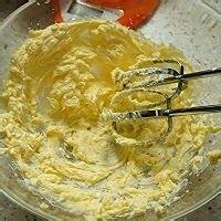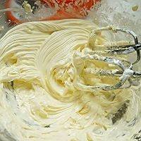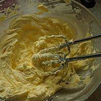 把糖粉加入软化过的黄油中,打蛋器打发黄油,打发至蓬松偏白,轻盈似羽毛状。