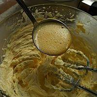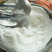 倒入第9步的蛋白中,继续高速打发,打到中性接近硬性发泡。