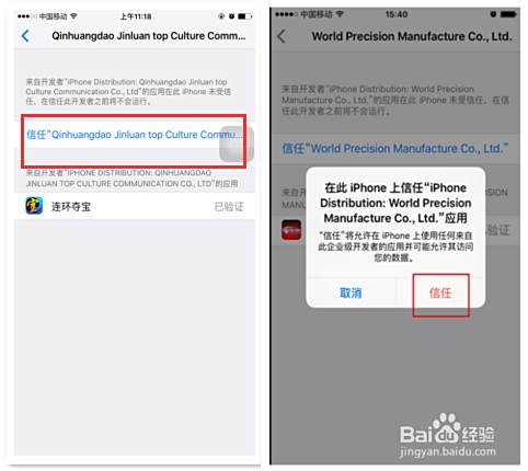 由于软件无法上传到AppStore上,在下载软件后需要添加信任,软件才可以使用。(手机需越狱,越狱方法请看下方)