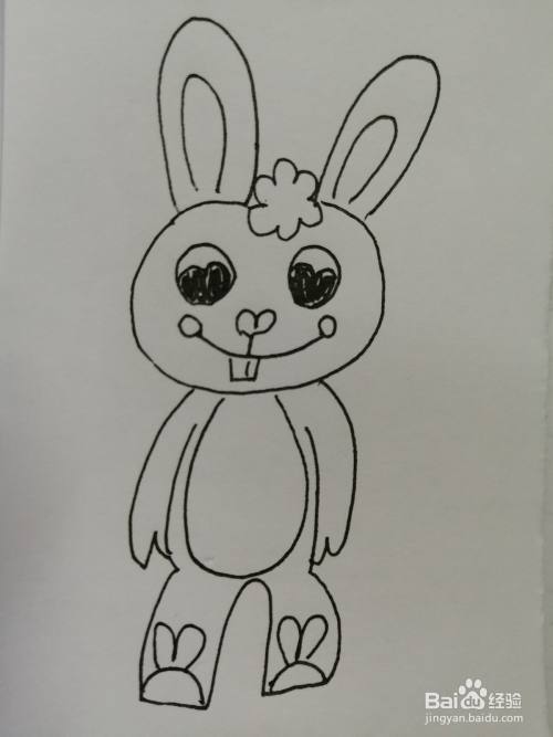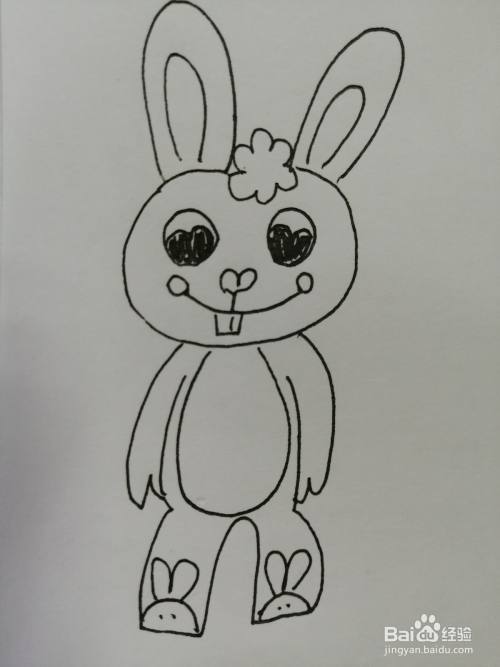 第八步,最后把可爱的小兔子脚上的兔子鞋画出来。简笔画可爱的小兔子就画好了。