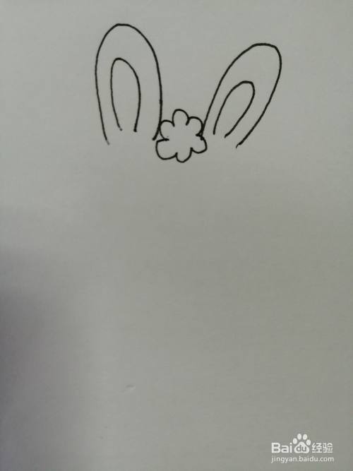 第二步,接着在可爱的小兔子两只耳朵下面画出椭圆形的头部,注意耳朵中间毛发的画法。