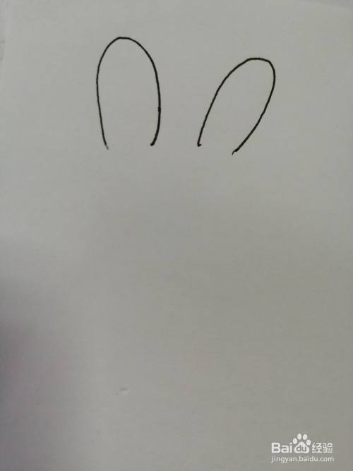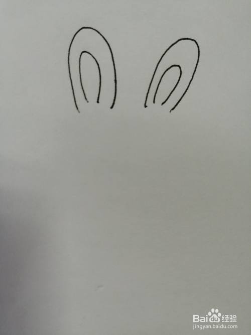 第一步,我们先把简笔画可爱的小兔子的两只长耳朵画出来,注意耳朵里面纹路的画法。