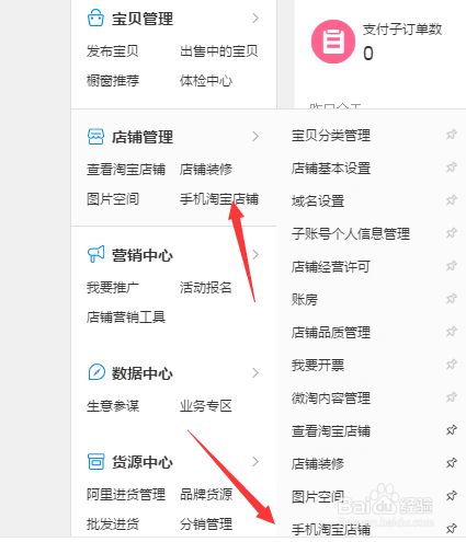 然后在店铺管理的细分中选中手机淘宝店铺。