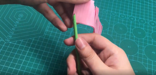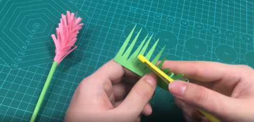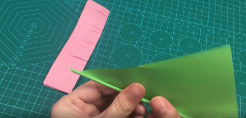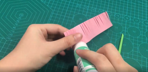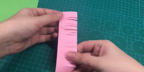 用剪刀剪出长条。
