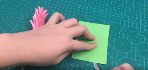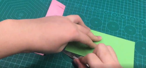 绿色的纸裁掉一半。