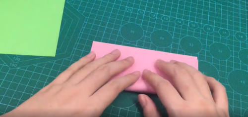 准备两张正方形彩纸,上下对折。